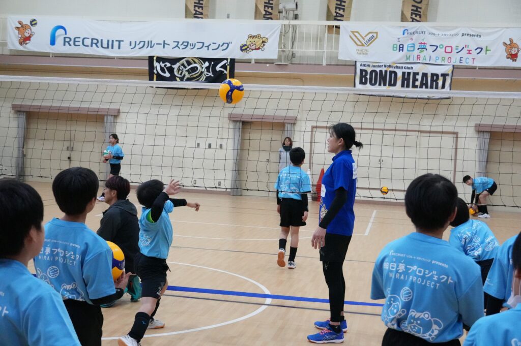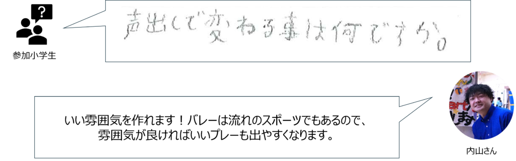 内山さんからは、基本の姿勢や考えながらバレーボールに取り組むことなど教わり、
