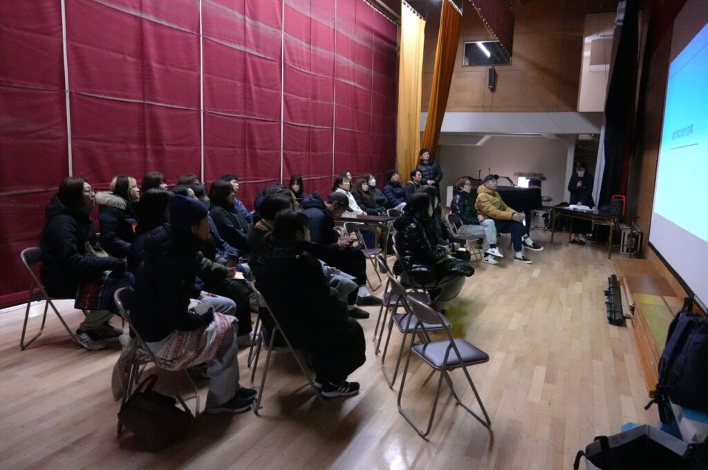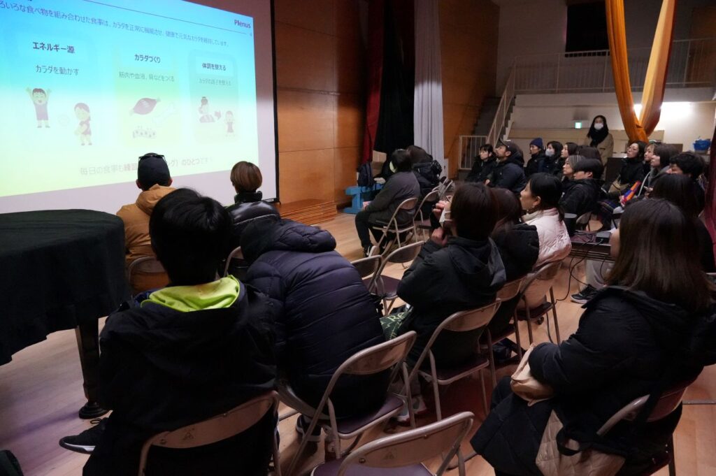 また体育館内のステージ上では、プレナス様のご協力のもと食育講座が開かれ、保護者の方が熱心に耳を傾けていました。。