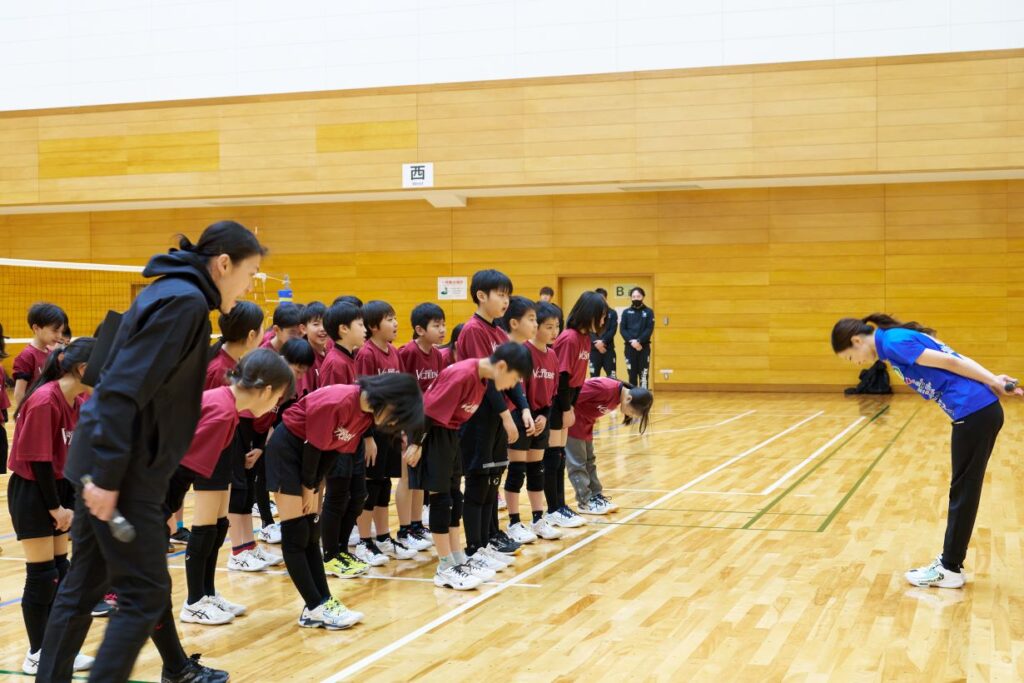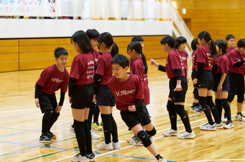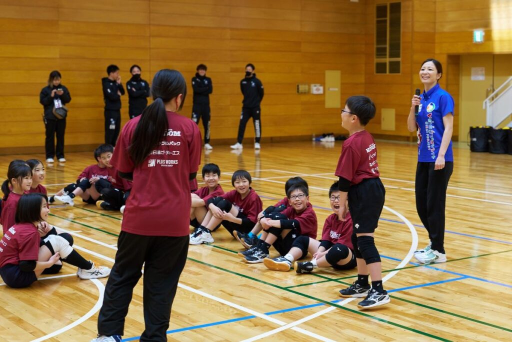 VC長野トライデンツさんの試合前にバレーボール教室の機会をいただきました。